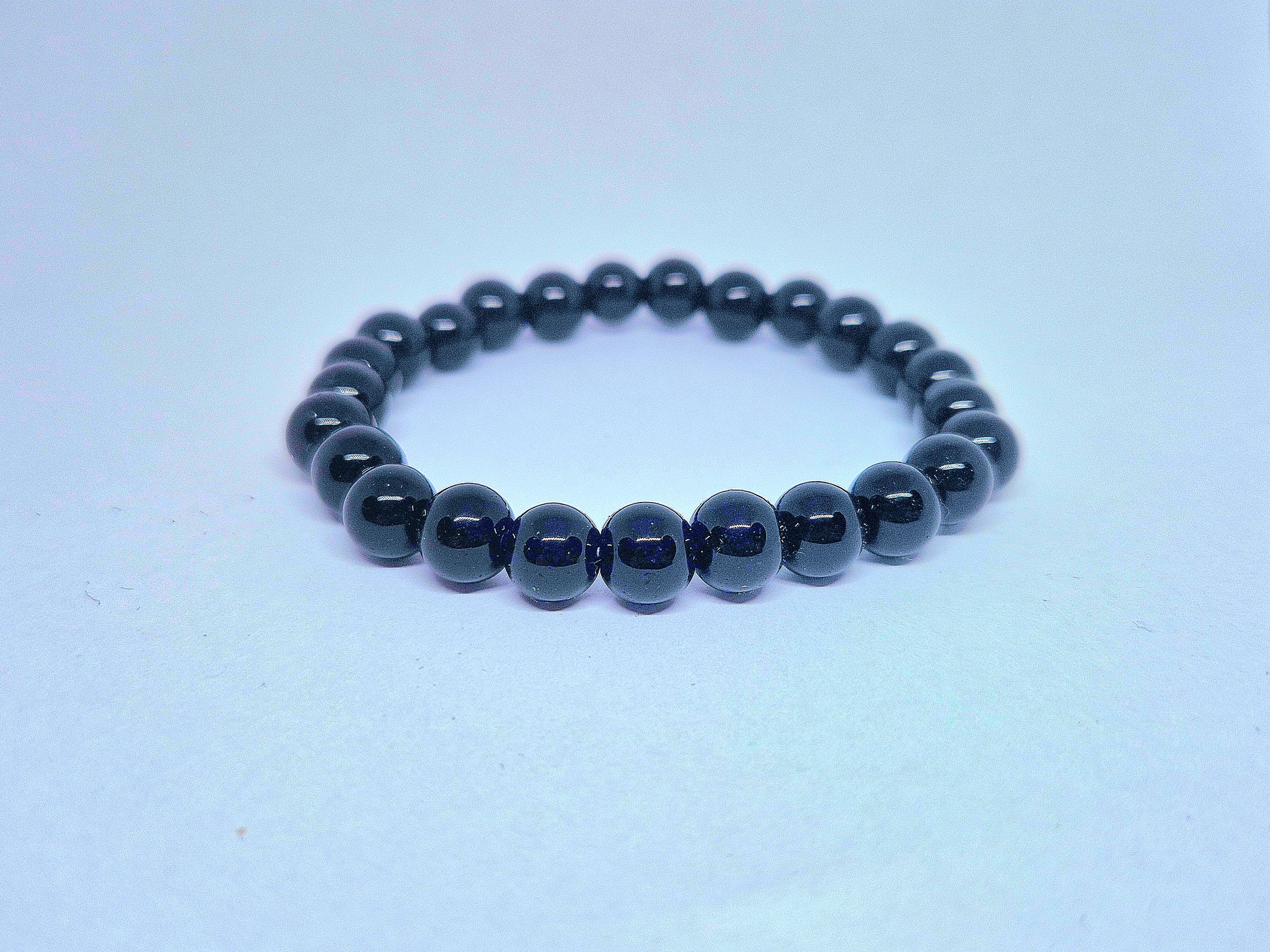 Material: Elastiskt armband med runda, polerade onyxpärlor