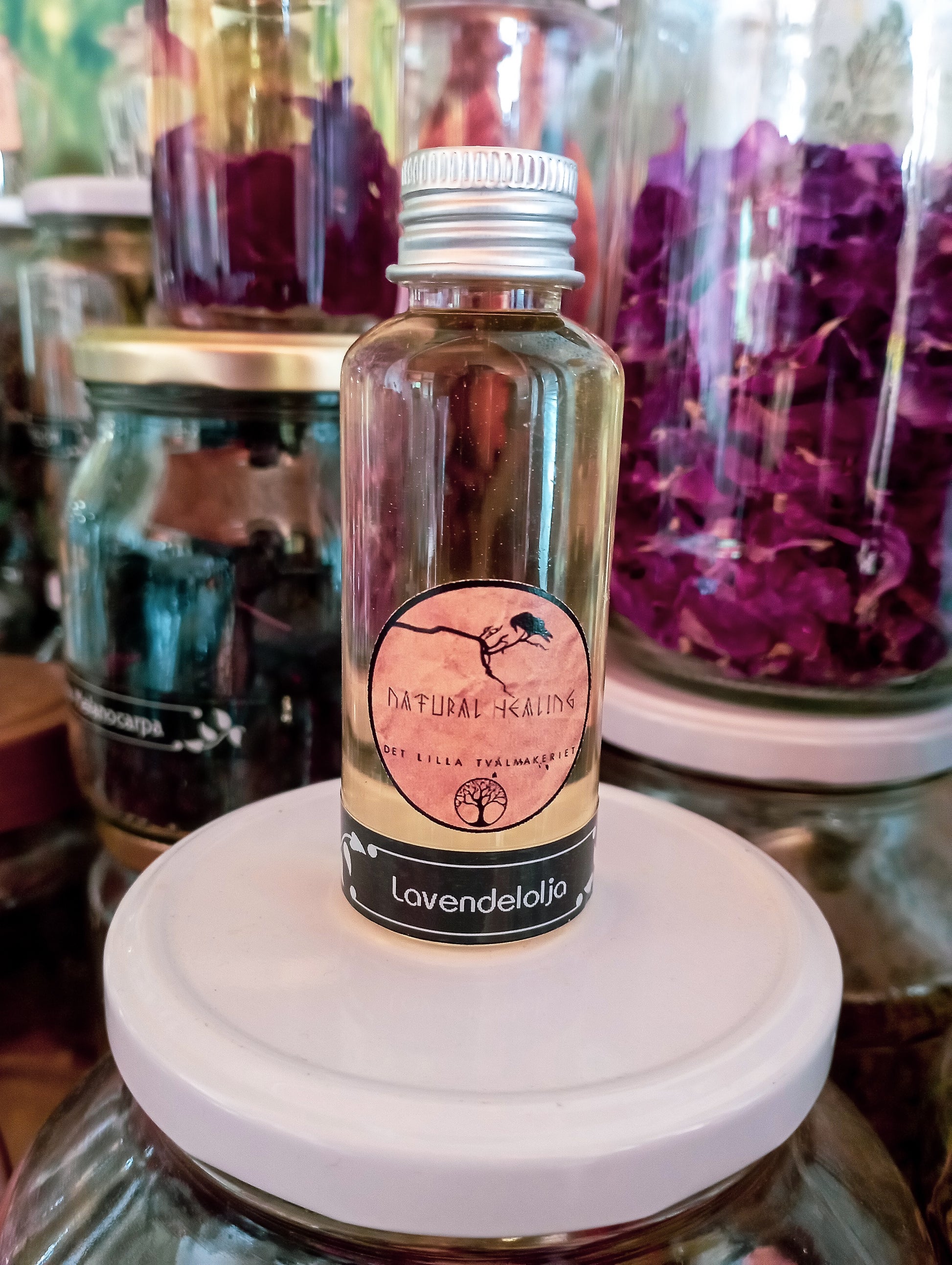 Lavendel är uppskattad för sina avslappnande egenskaper och ger oljan en mjuk, trygg känsla som passar både kvällsrutiner och stunder då kroppen behöver varva ner.